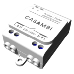 Il permet de transformer un interrupteur standard en interrupteur « intelligent ». N’importe quel interrupteur peut donc être intégré au réseau Casambi. La fonction bouton poussoir peut y être associée.